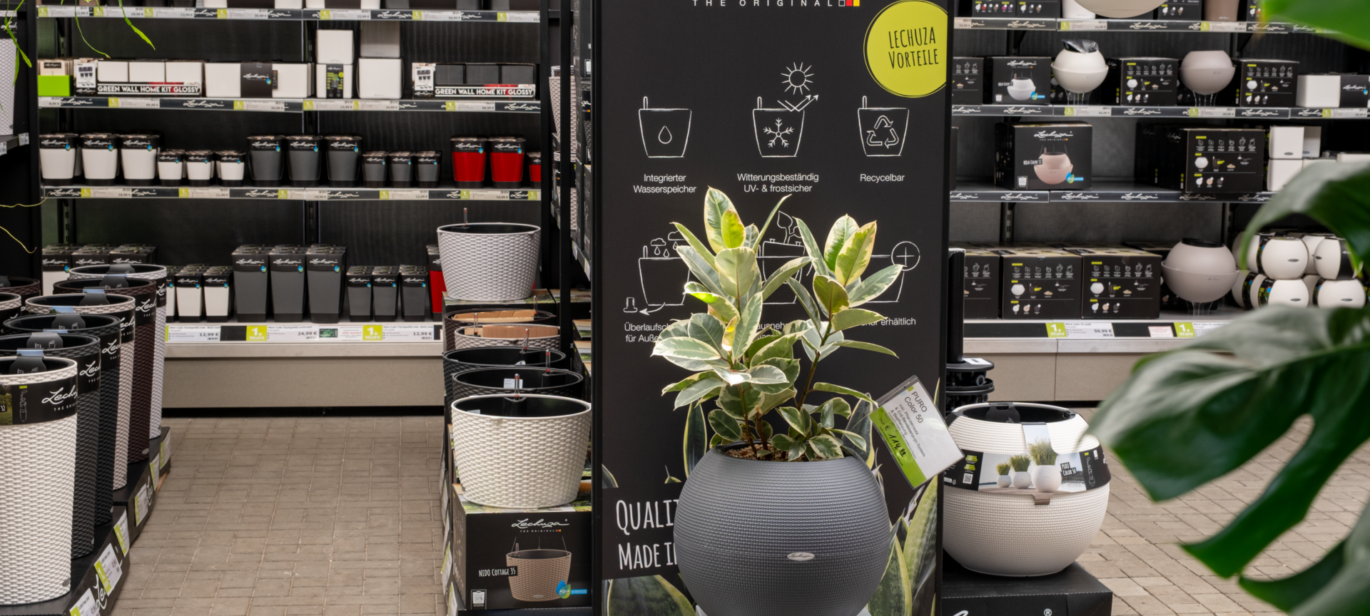Visit us at our LECHUZA store accessible directly from the FunPark and discover the secret of beautiful plants. Choose from the complete assortment of LECHUZA planters in our shop laid out across a space of roughly 800 m². Our skilled employees are happy to help and assist with detailed information about the unique sub-irrigation system.